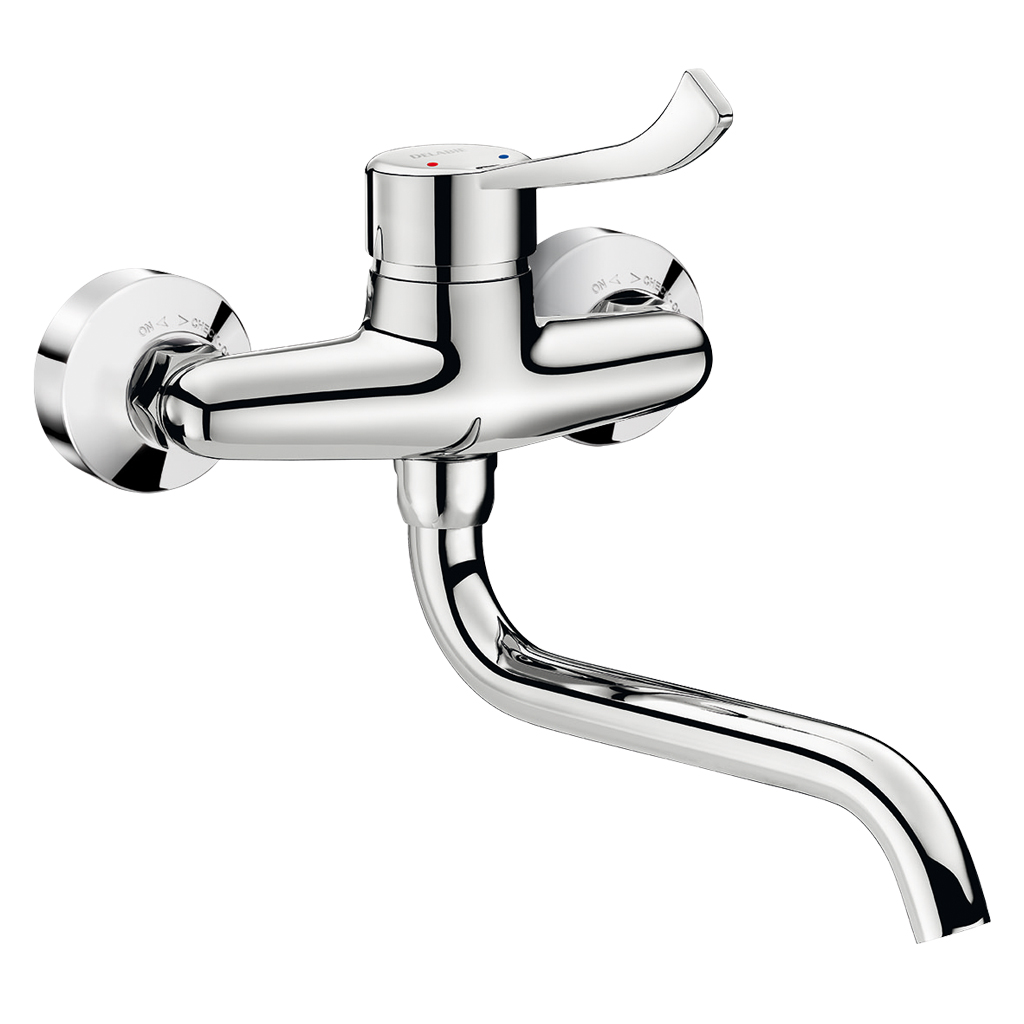 Арт. 2519LМеханический настенный смеситель для мойки с поворотным изливом, длина 200.