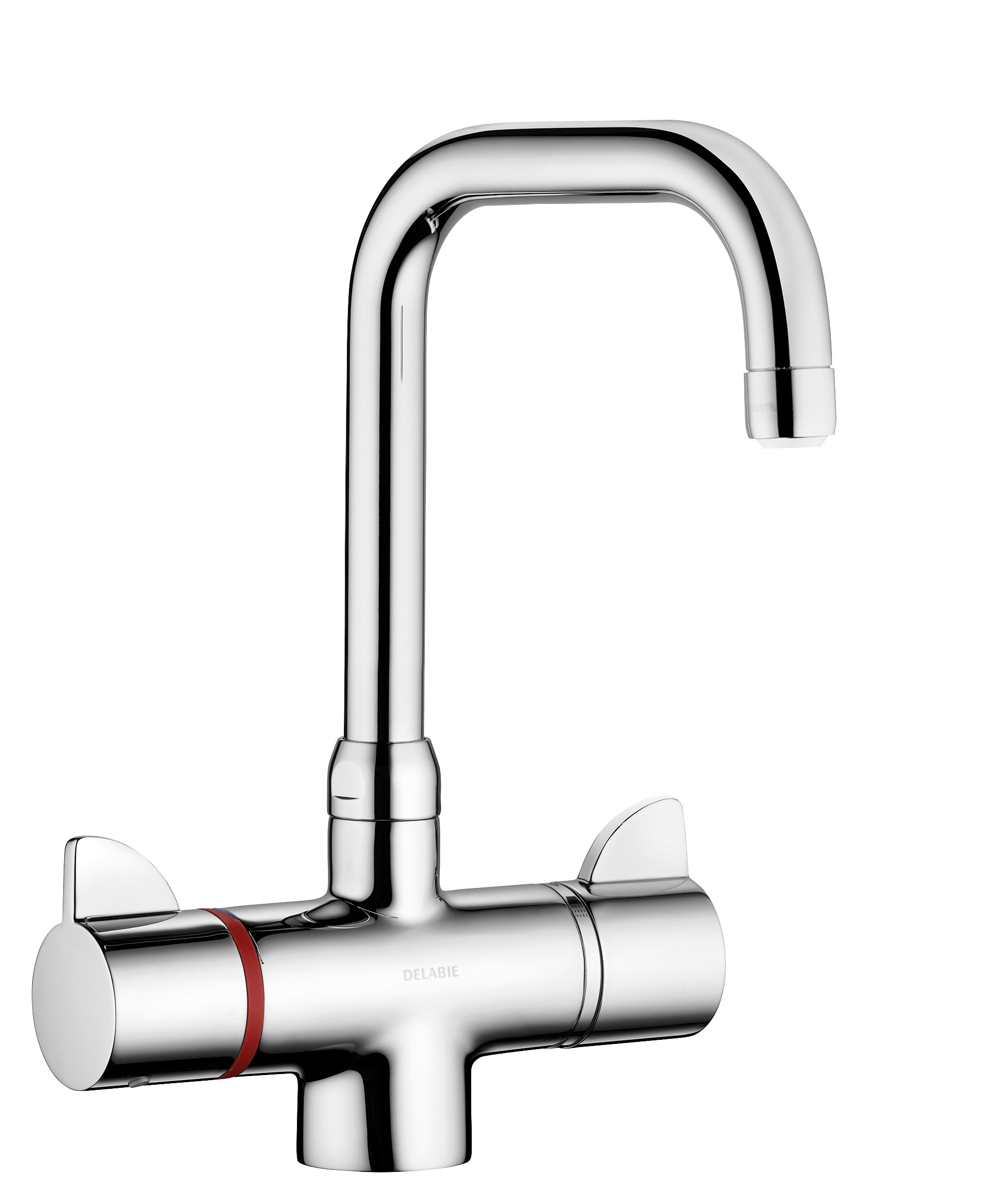 Арт. H9726Термостатический двурычажный смеситель для раковины SECURITHERM с поворотным изливом - трубкой, длина 150, высота 210.