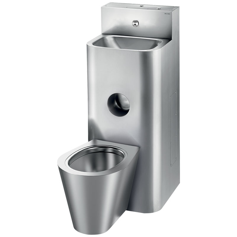 Унитаз полностью приварен к умывальнику, без каких-либо креплений: простой уход и невозможность сокрытия предметов.