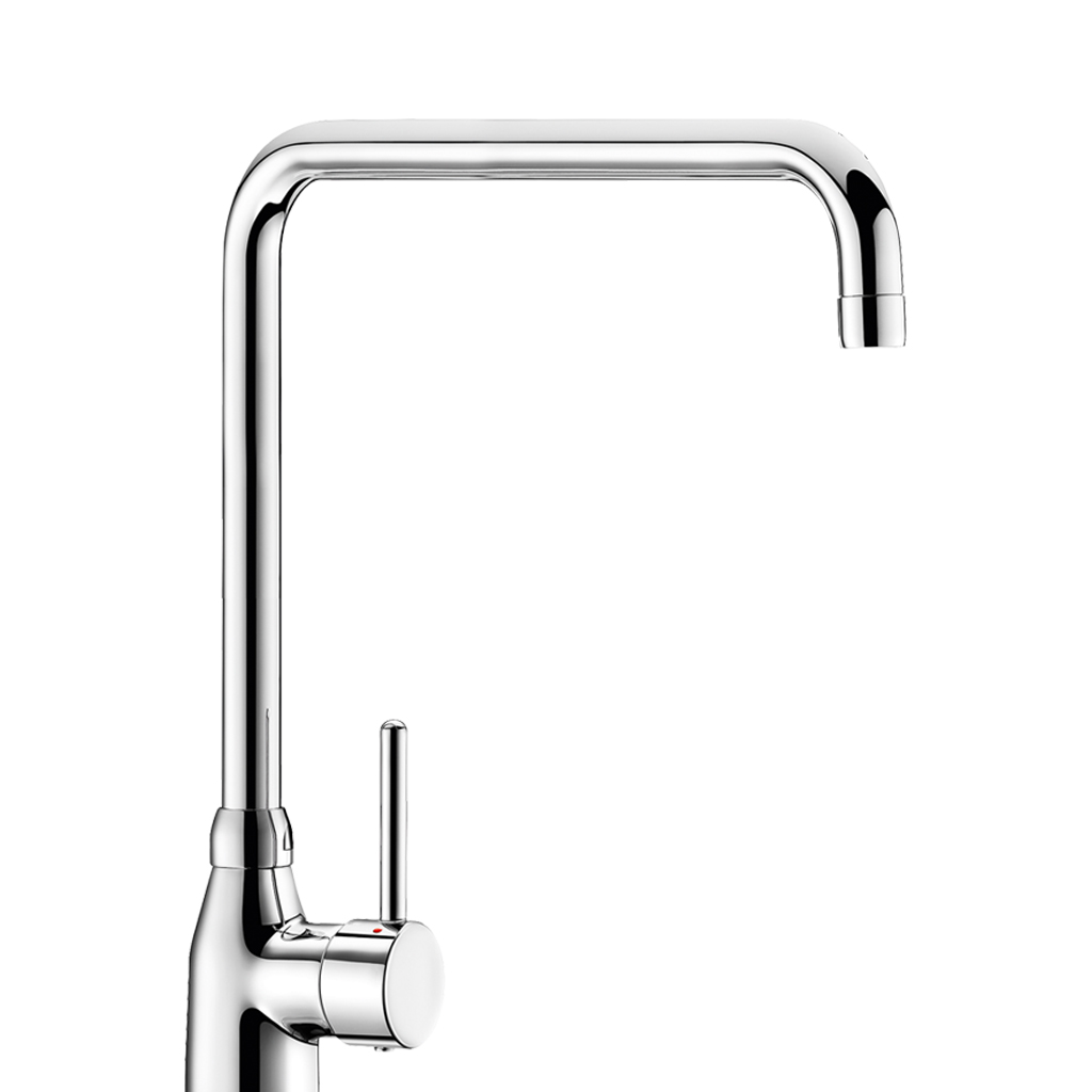 Корпус и излив из хромированной латуни с креплениями, усиленными 2 стержнями из нержавеющей стали и контргайкой.